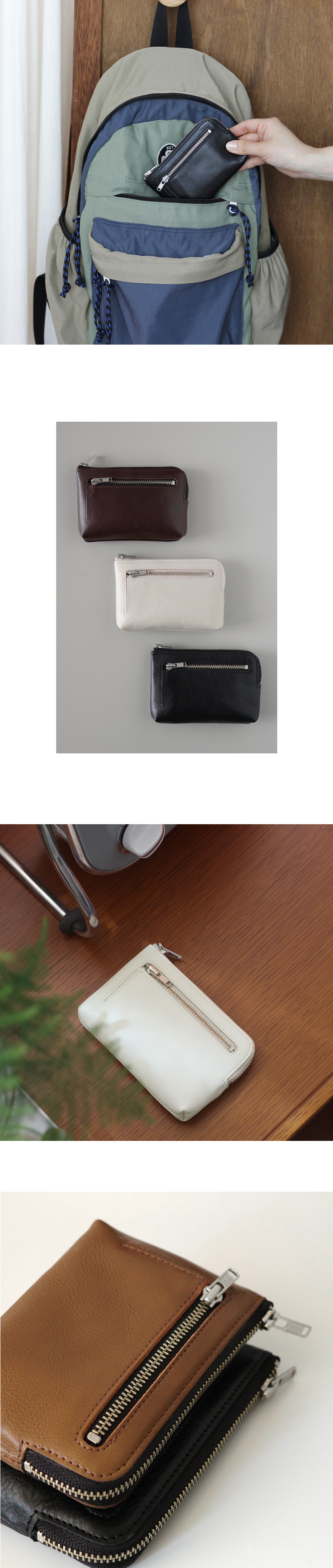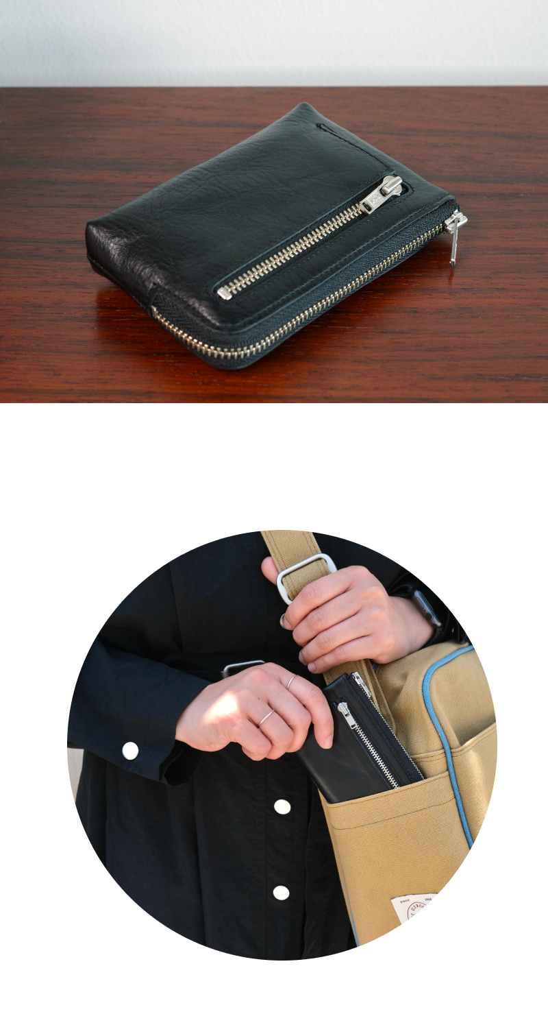 전면의 지퍼 포켓에는 동전을 수납하기에 좋으며